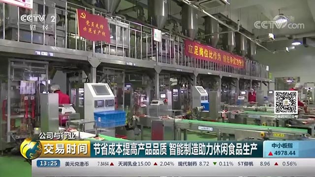 這條生產(chǎn)線是企業(yè)自主開(kāi)發(fā),瓜子全自動(dòng)流水線,自動(dòng)包裝、運(yùn)輸、裝箱一體化,工藝控制實(shí)現(xiàn)全流程自動(dòng)控制以及遠(yuǎn)程監(jiān)控。這樣,不僅讓效率得到提升,讓企業(yè)的生產(chǎn)標(biāo)準(zhǔn)也得到精準(zhǔn)的執(zhí)行。像這樣的生產(chǎn)線,以前企業(yè)需要用200多人,現(xiàn)在只需要20人。一年節(jié)約人工成本超過(guò)1000萬(wàn)元以上。