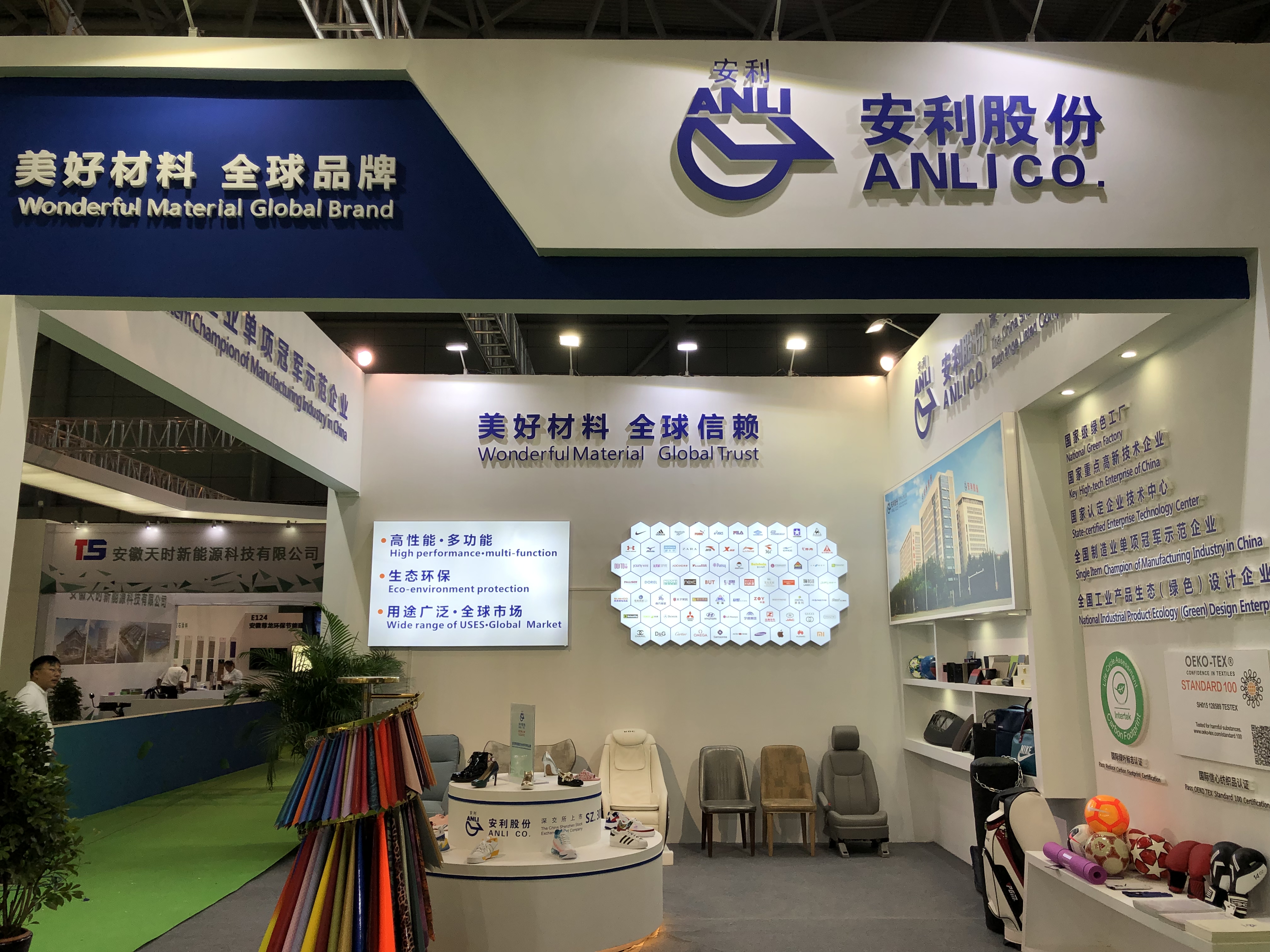 展覽現(xiàn)場,安利股份研發(fā)生產(chǎn)的生態(tài)功能性聚氨酯復(fù)合材料以及鞋類、沙發(fā)家俱、手袋箱包、證件文具、按摩椅、球類、體育用品、汽車內(nèi)飾等下游加工制作產(chǎn)品琳瑯滿目,令人目不暇接,吸引了往來賓客紛紛駐足,贊不絕口。這些產(chǎn)品均采用清潔生產(chǎn)工藝制作而成,時尚流行,高性能、多功能,生態(tài)環(huán)保,凝聚著安利自主創(chuàng)新的智慧結(jié)晶,代表著全球聚氨酯合成革領(lǐng)域綠色發(fā)展的最高水平。安利材料6個月產(chǎn)量即可繞地球一圈,并且出口到全球70多個國家和地區(qū),與全球70億人口的穿、用、住、行、玩密切相關(guān)。