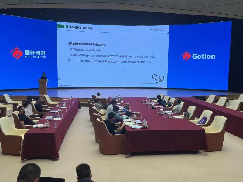 為進(jìn)一步提高上市公司規(guī)范運(yùn)作水平,安徽上市公司協(xié)會(huì)“高管講堂”(第十一講)于9月21日在國(guó)軒高科舉辦,公司董事、監(jiān)事、高級(jí)管理人員及相關(guān)負(fù)責(zé)人員50余人參加培訓(xùn)。活動(dòng)由國(guó)軒高科副總經(jīng)理、董秘潘旺主持,國(guó)軒高科董事長(zhǎng)李縝、我會(huì)副會(huì)長(zhǎng)兼秘書長(zhǎng)袁宏生等出席培訓(xùn)會(huì)并致辭。
