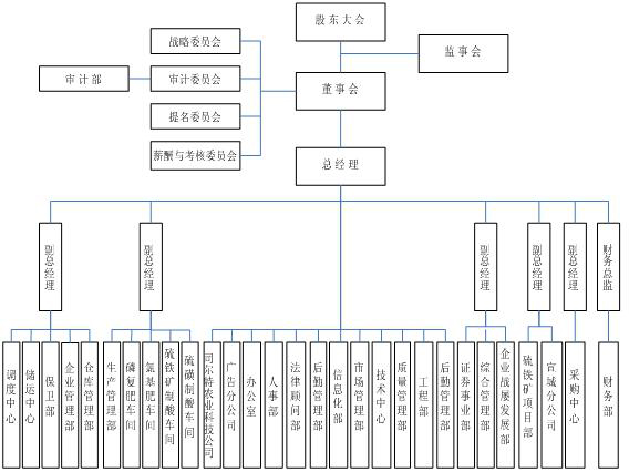 2、組織機(jī)構(gòu)。公司根據(jù)職責(zé)劃分,結(jié)合公司實(shí)際情況,設(shè)立各職能部門,并制定了相應(yīng)的崗位職責(zé)。各職能部門分工明確、各負(fù)其責(zé),相互協(xié)作、相互牽制、相互監(jiān)督。公司組織機(jī)構(gòu)圖如下: